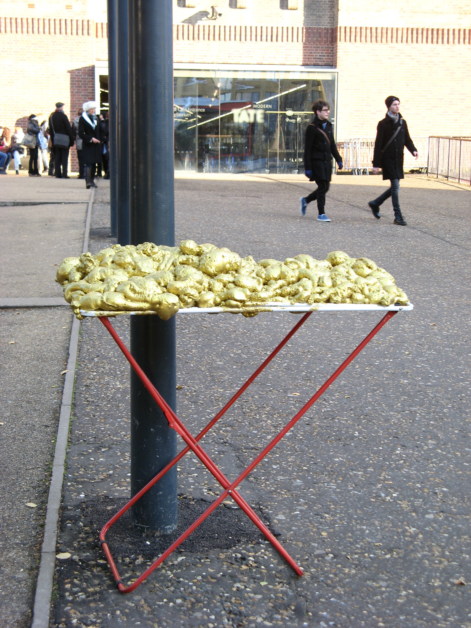 © Renate Egger and Wilhelm Roseneder. Goldene Erweiterung/Golden expansion. Street art project. London. Tate Modern. December 2010