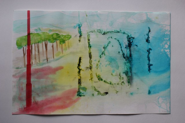 © Wilhelm Roseneder. Studie zu italienischer Landschaft/Study to italian landscape, 2011. Aquarell, Bleistift, Tusche, Chinesische Tusche/Watercolour, pencil, ink, Chinese ink, 24x34 cm