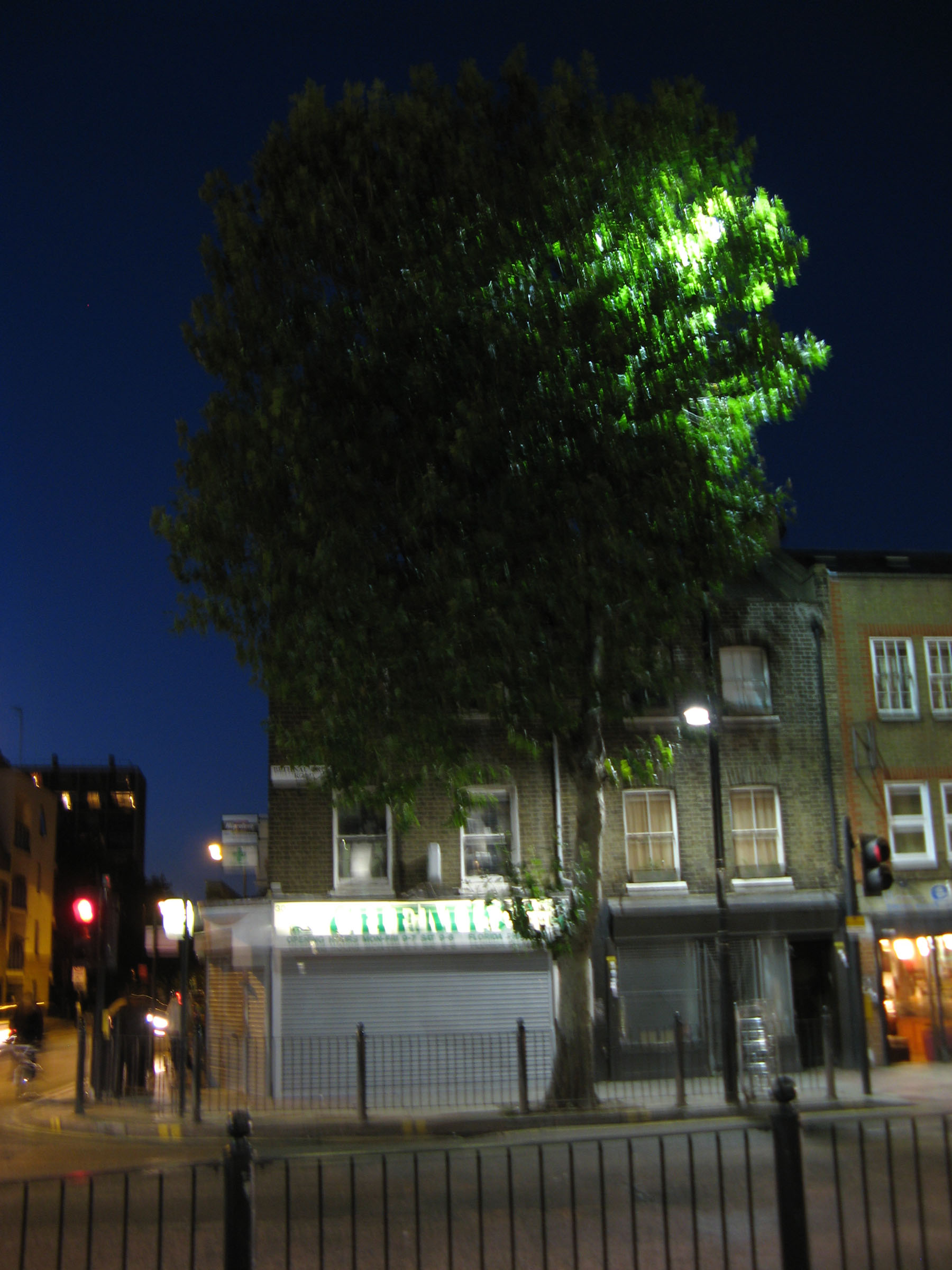 Erleuchteter Baum/Illuminated tree. Bethnal Green Road, London, UK, October 2010