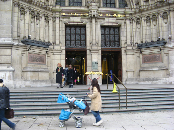 Renate Egger and Wilhelm Roseneder. Goldene Erweiterung/golden expansion. Street art project. London. V & A Museum. December 2010