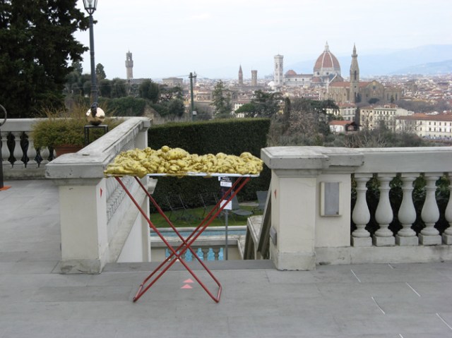 © Renate Egger and Wilhelm Roseneder. Goldene Erweiterung/Golden expansion. Street art project. Piazza della Signoria. Florence, Italy. March 2011