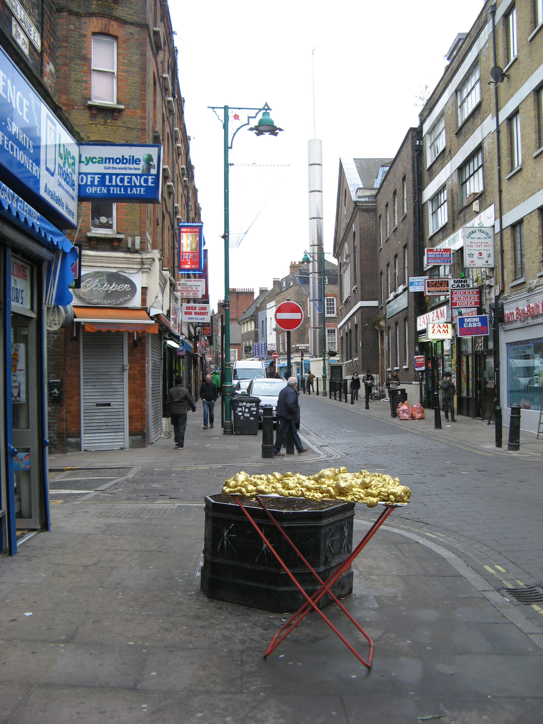 © Renate Egger and Wilhelm Roseneder. Goldene Erweiterung/Golden expansion. Street art project – temporary installation in public space. Brick Lane. London, UK, 2010