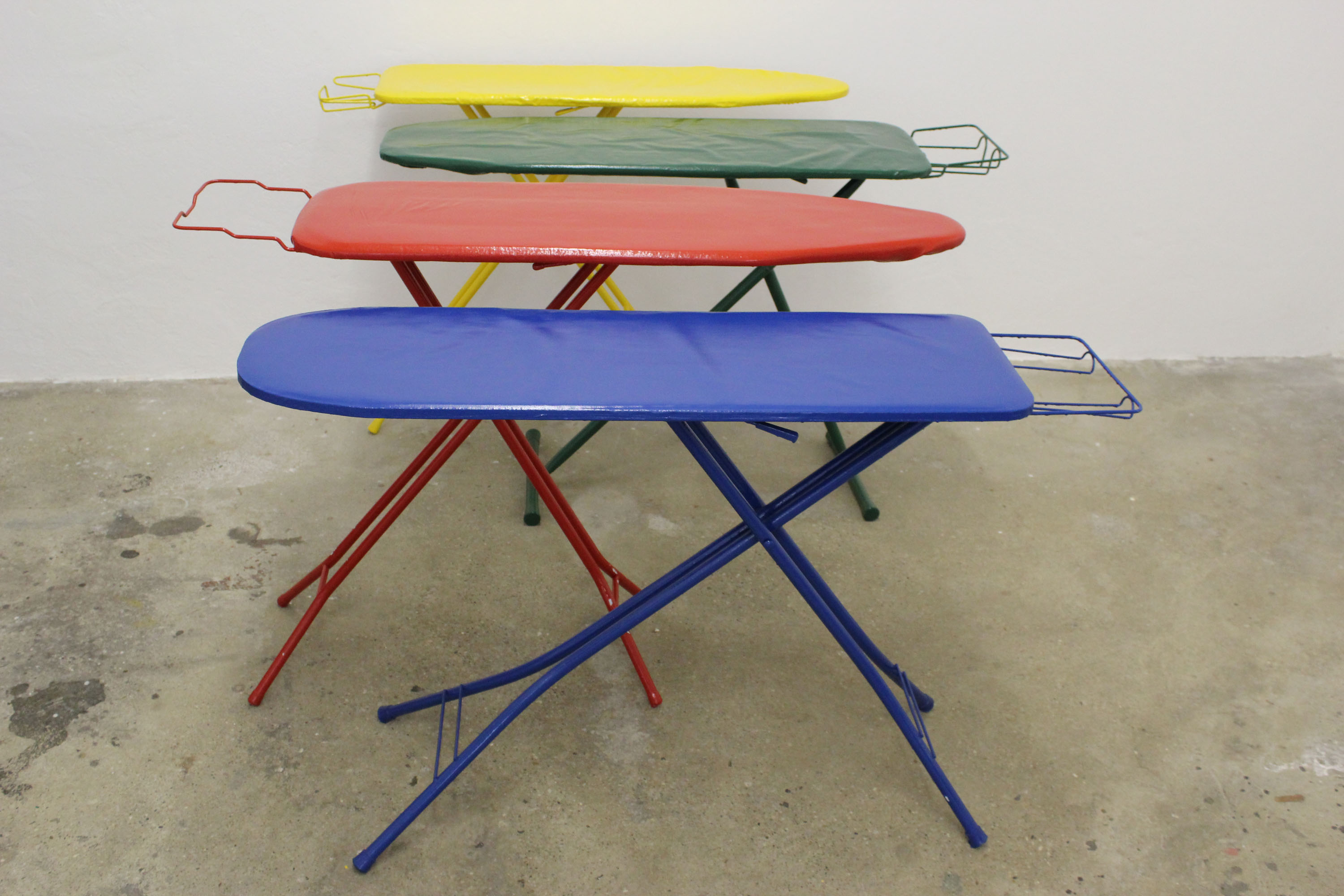 Acryllack auf Metall, Stoff (Bügelbretter)/Acrylic varnish on metal, fabric (ironing boards)