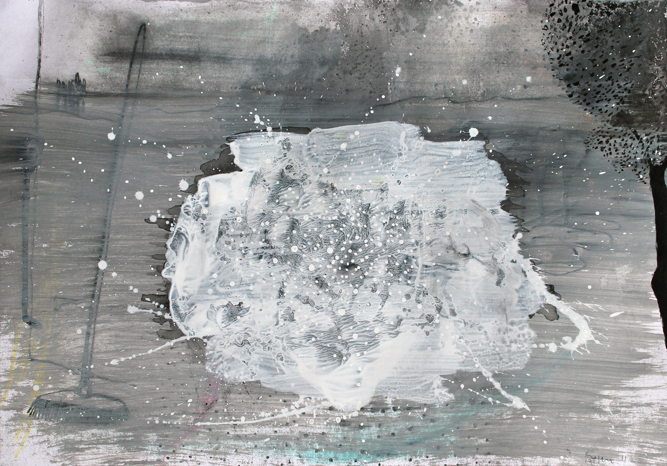 Chinesische Reibtusche, Deckweiß, Bleistift auf Papier/Chinese ink, opaque white, pencil on paper 24×34 cm
