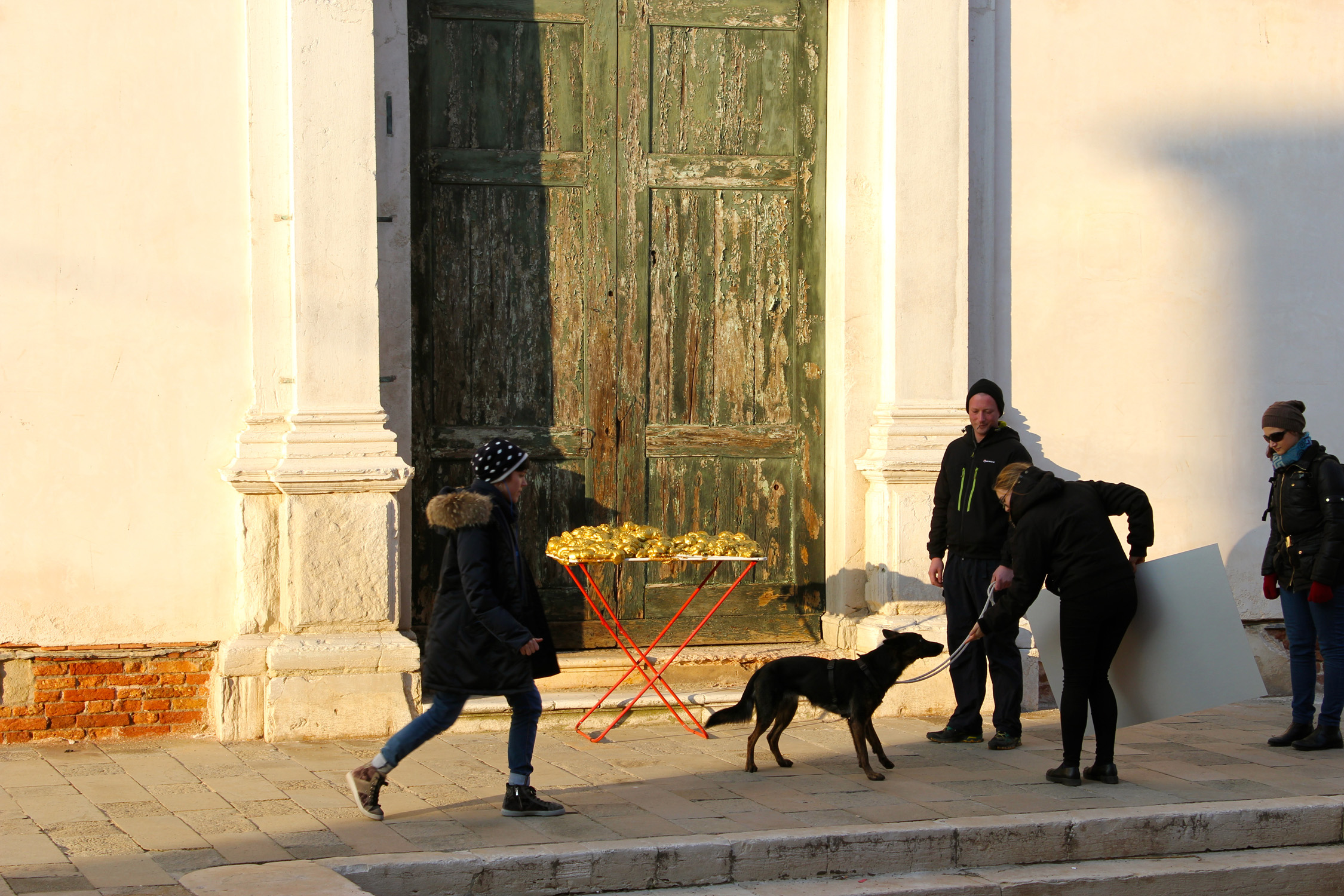 © Renate Egger and Wilhelm Roseneder. Goldene Erweiterung/Golden expansion. Street art project. Venice, Italy, December 2016.