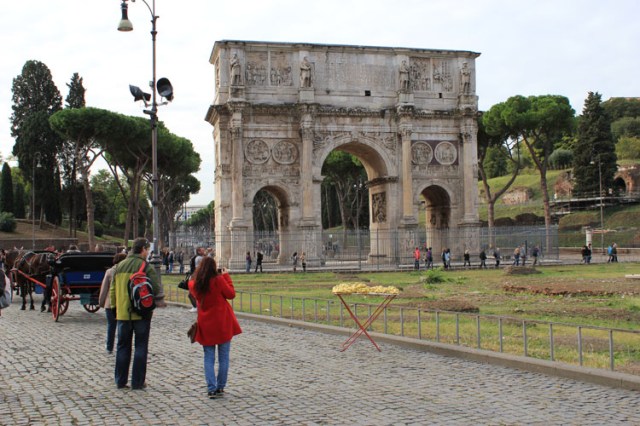 © Renate Egger and Wilhelm Roseneder. Goldene Erweiterung/Golden expansion. Street art project. Arco di Constantino, Rome, Italy, October 2011