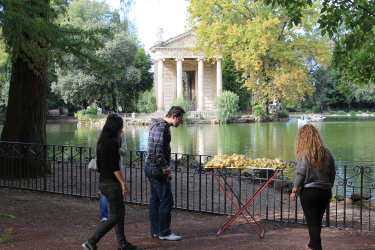 © Renate Egger and Wilhelm Roseneder. Goldene Erweiterung/Golden expansion. Street art project. Villa Borghese, Rome, Italy, October 2011