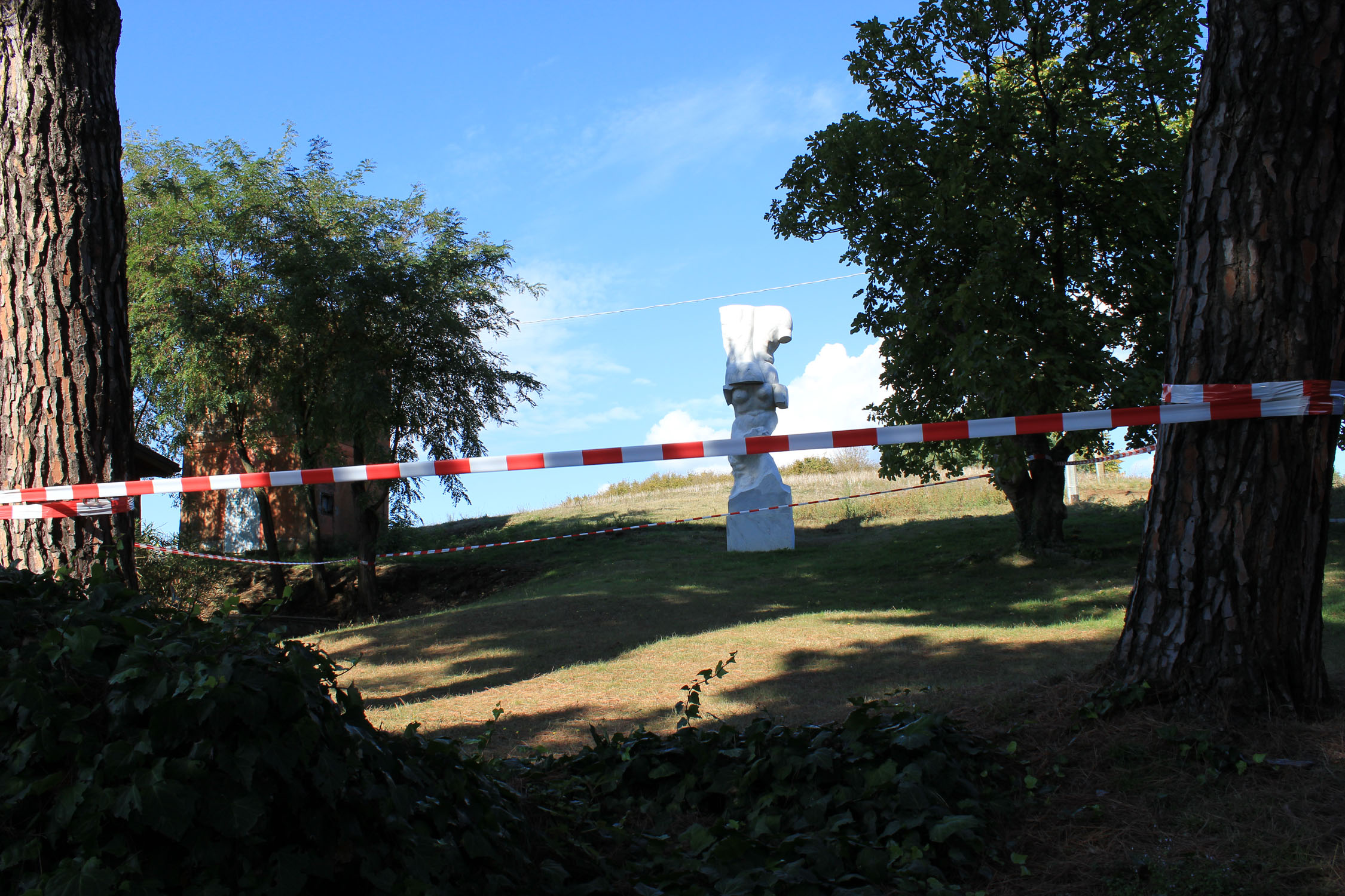 © Renate Egger. Paradies/Paradise/Paradiso. Pinien, Absperrband/Stone-pines, barrier tape. Artist in Residence. Azienda Colonna. Cervinara, Paliano, Italy 2011