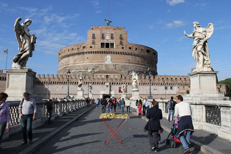 © Renate Egger and Wilhelm Roseneder. Goldene Erweiterung:Golden expansion. Street art project. Castel Sant`Angelo, Rome, Italy, October 2011