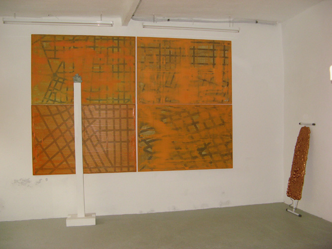 Wilhelm Roseneder. Guides, 1998-2003. Öl auf Aluminium/Oil on aluminium. Grauer Kunstgriff, 2005. Lack auf Ton/Varnish on clay. Bronzene Erweiterung/Bronzen expansion, 2009. Polyurethan, varnish on metal (ironing-board)