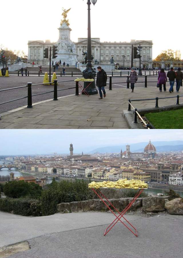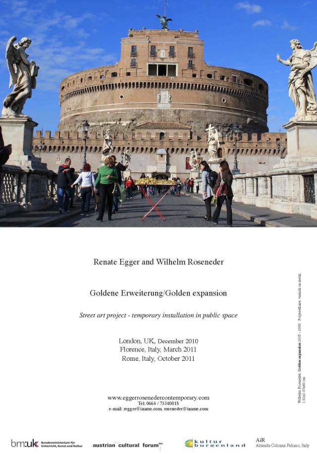 © Wilhelm Roseneder, Renate Egger. Goldene Erweiterung/Golden expansion. Street art project. London, UK 2010. Florence, Italy 2011. Rome, Italy 2011. Schnittpunkt Burgenland. Landesgalerie Burgenland. Eisenstadt, Burgenland, Austria, 2012-2013