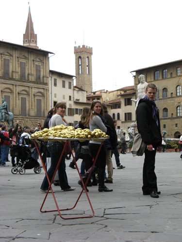 Renate Egger and Wilhelm Roseneder. Goldene Erweiterung/golden expansion. Street art project. Piazza della Signoria. Florence, Italy. March 2011