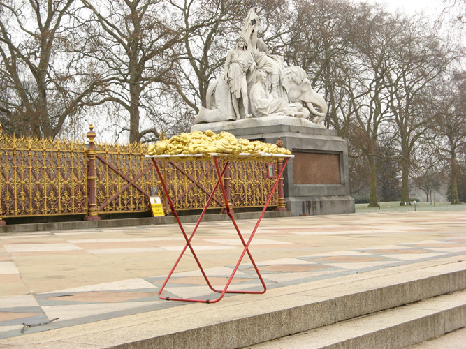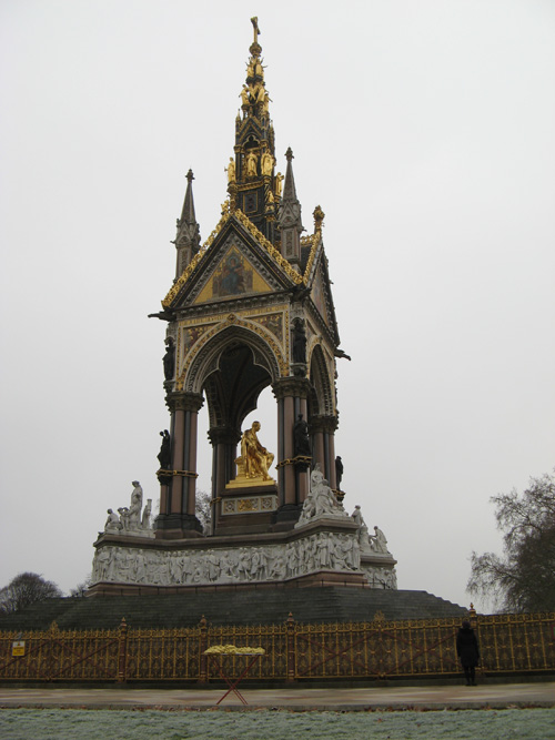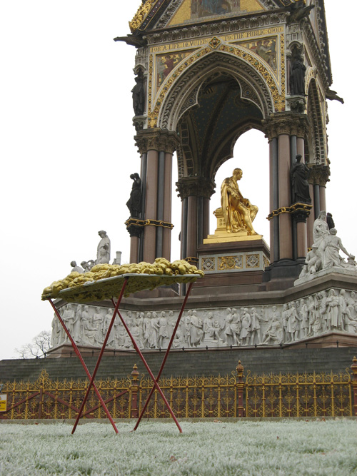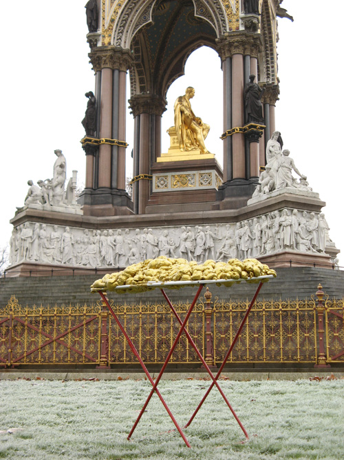Renate Egger and Wilhelm Roseneder. Goldene Erweiterung/golden expansion. Street art project. London. Albert Memorial. December 2010