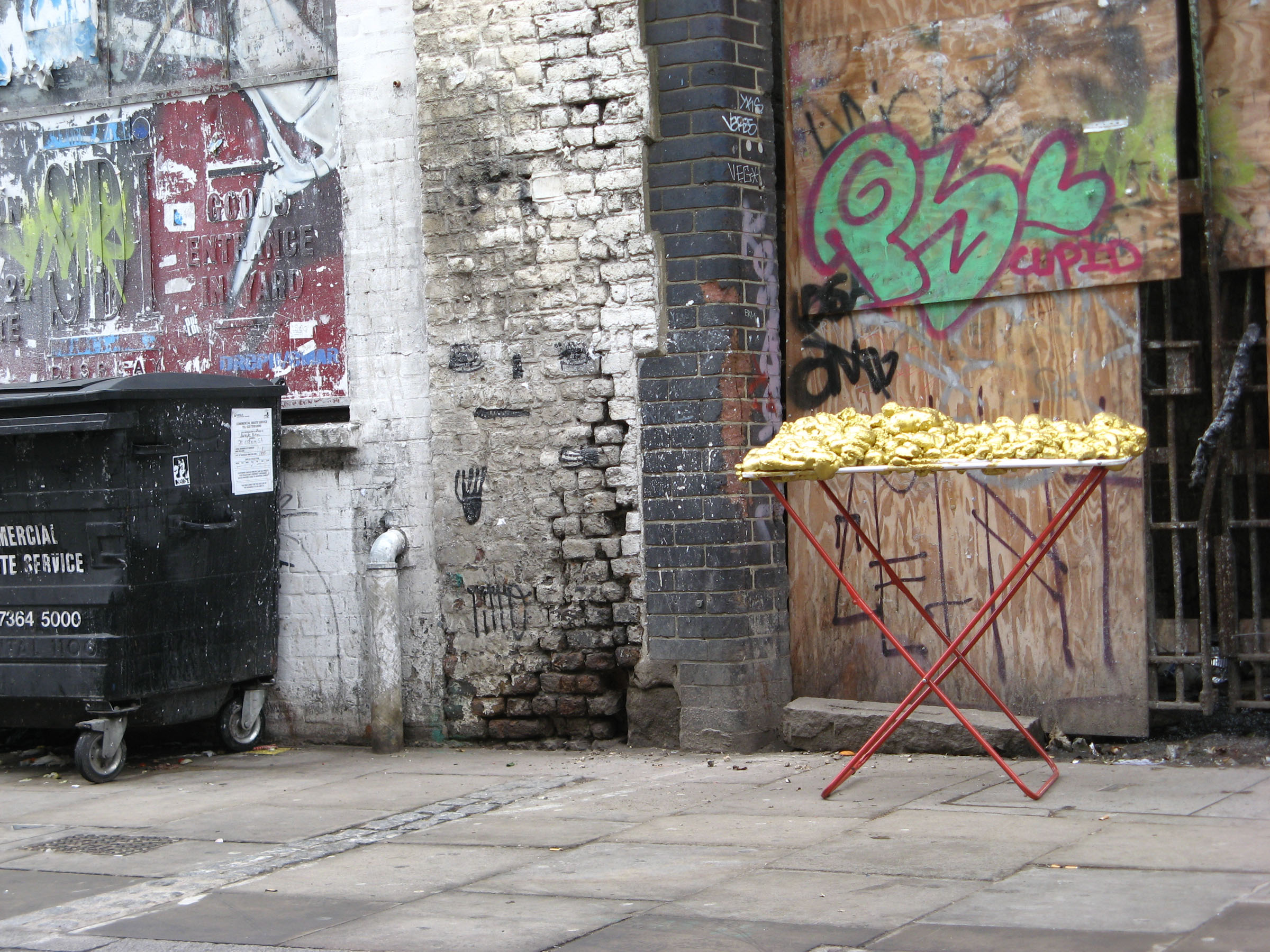© Renate Egger and Wilhelm Roseneder. Goldene Erweiterung/Golden expansion. Street art project – temporary installation in public space. Brick Lane. London, UK, 2010