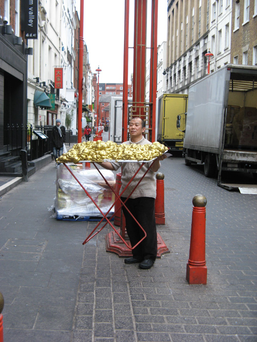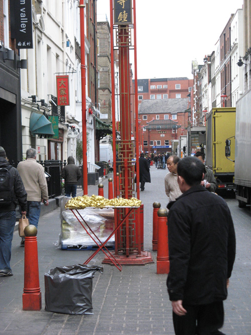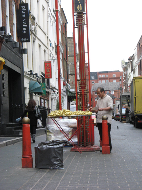 Renate Egger and Wilhelm Roseneder. Goldene Erweiterung/golden expansion. Street art project. London. Chinatown. December 2010