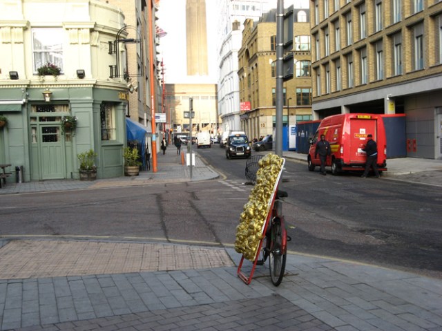Goldene Erweiterung/Golden expansion. Street art project – temporary installation in public space. London, UK, December 2010