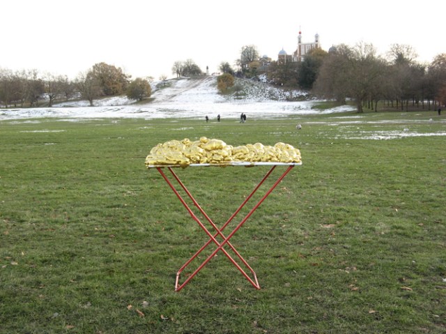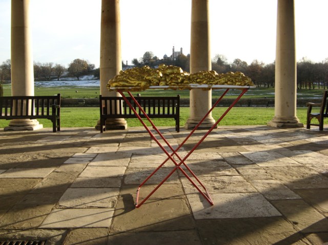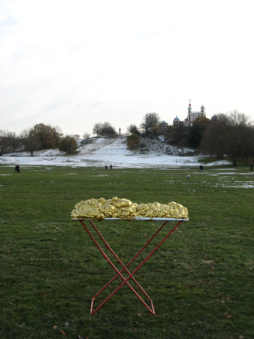 Renate Egger and Wilhelm Roseneder. Goldene Erweiterung/golden expansion. Street art project. London. Greenwich. December 2010