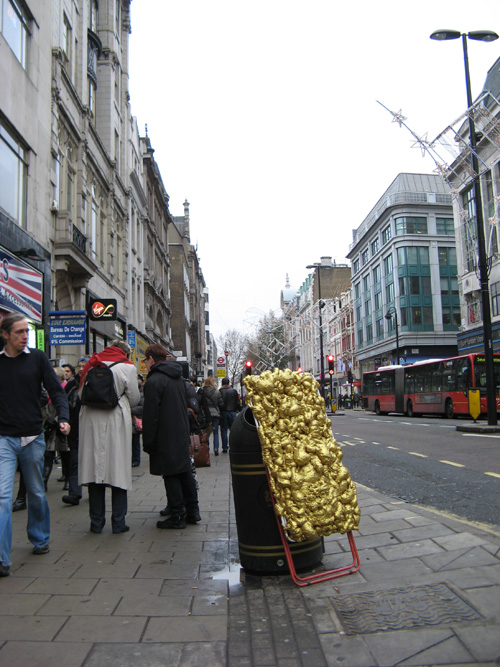 Renate Egger and Wilhelm Roseneder. Goldene Erweiterung/Golden expansion. Street art project. London. Oxford Street. December 2010