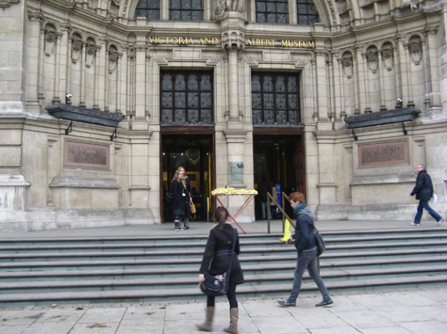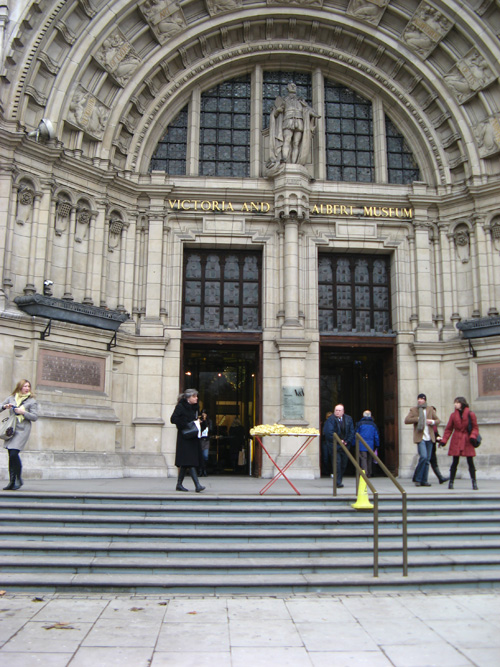 Renate Egger and Wilhelm Roseneder. Goldene Erweiterung/golden expansion. Street art project. London. V & A Museum. December 2010