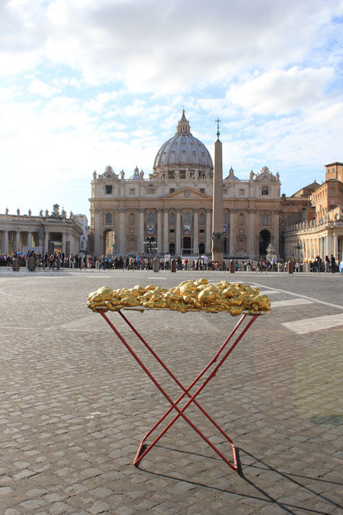 © Renate Egger and Wilhelm Roseneder. Goldene Erweiterung/Golden expansion. Street art project. Vatikan, Rome, Italy, October 2011