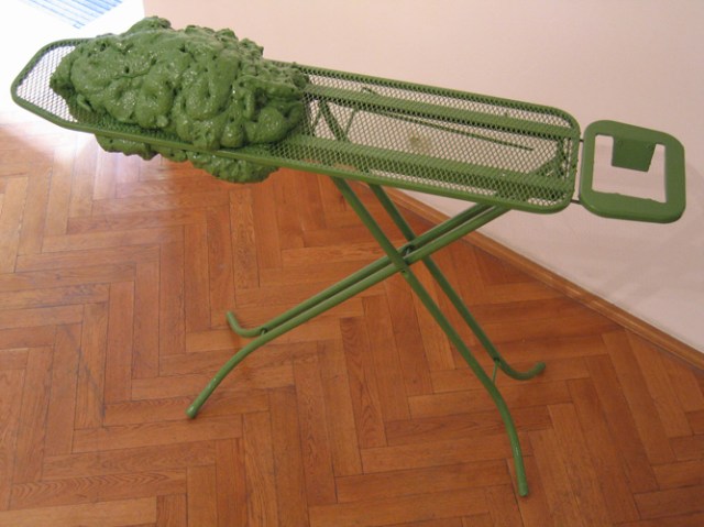 Wilhelm Roseneder. Hellgrüne Erweiterung/Light-green expansion, 2005. Polyurethan, various material, varnish on metal (ironing board), 1.02x1.30x36 cm