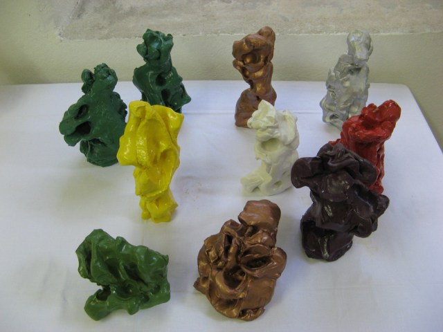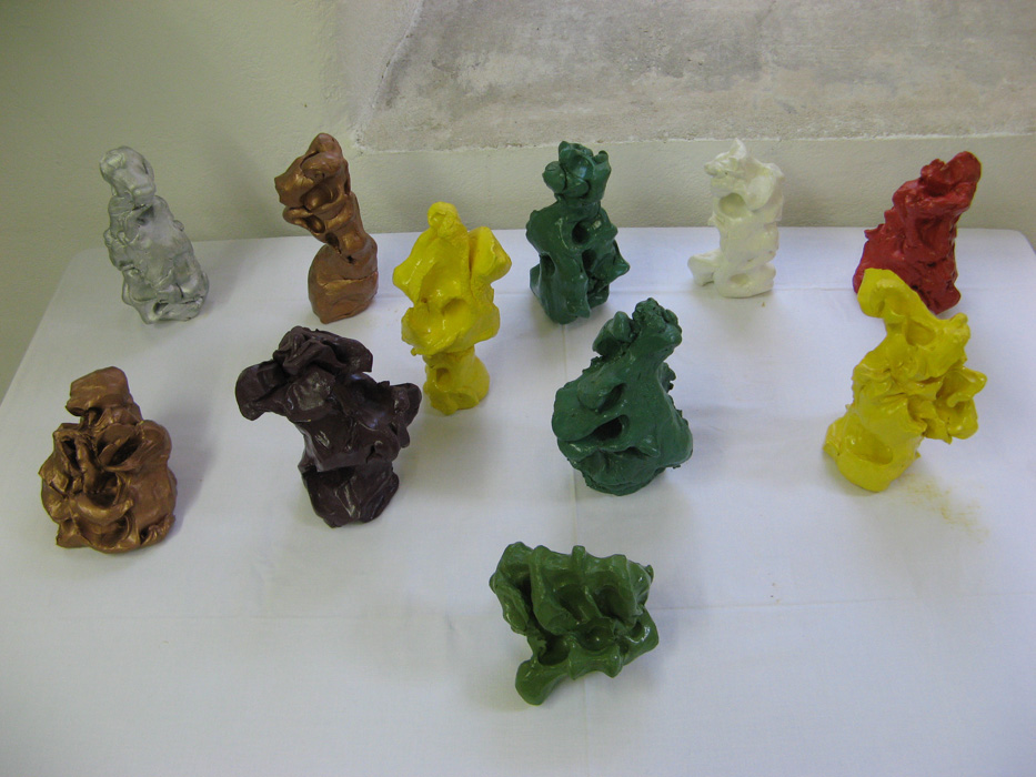 Wilhelm Roseneder. Kunstgriffe. 2002-2006. Ungebrannter Ton, Lack/Varnish on non-fired clay, ca. 20 cm high