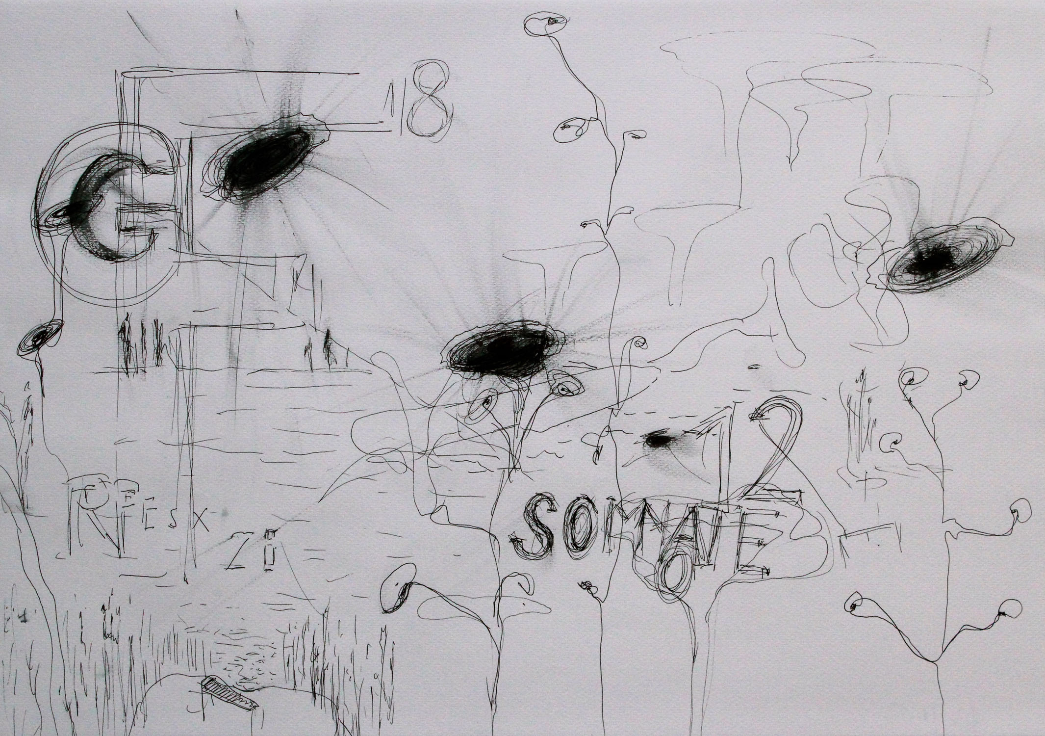 Zeichnung/Drawing. Bleistift, Allstift, Kugelschreiber, Filzstift/Pencil, all pen, ball pen, felt pen, 42×30 cm